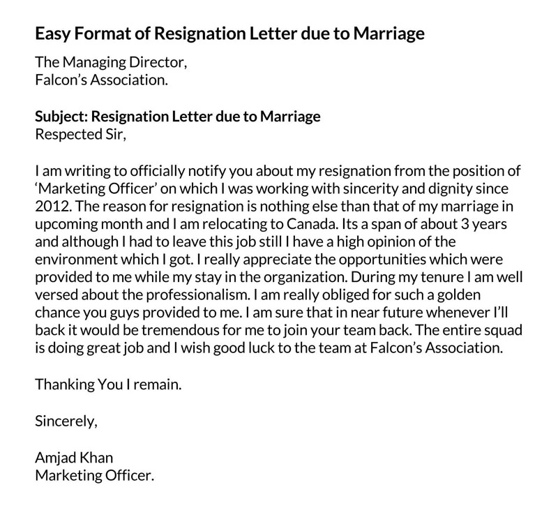 Explain why getting married is prompting you to leave your job for example you need to relocate care for children or plan your wedding. Constructing a exceptional papers is a great way to make it easier for fellow members of your enterprise to learn fully grasp and comprehend your plan of action. Resignation Letter Format With Reason Marriage Templates Uploaded by admin on Saturday October 9th 2021 in category Resignation Letter.