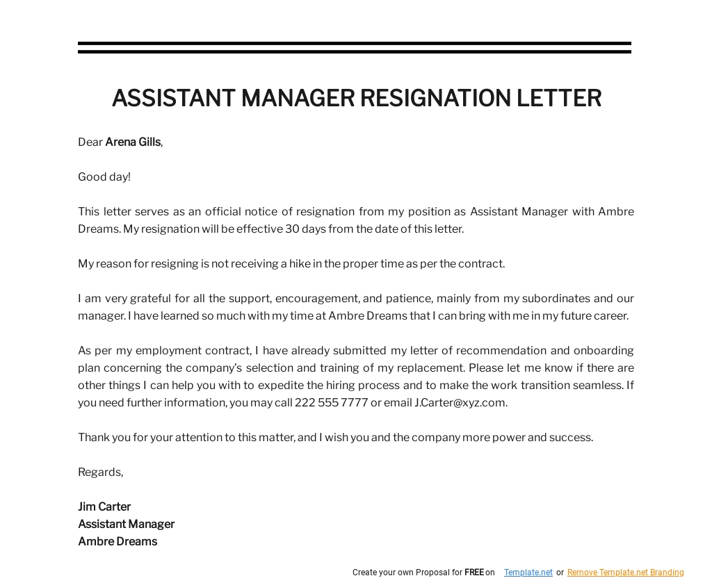 Free Assistant Manager Resignation Letter Template Google Docs Word Template Net
