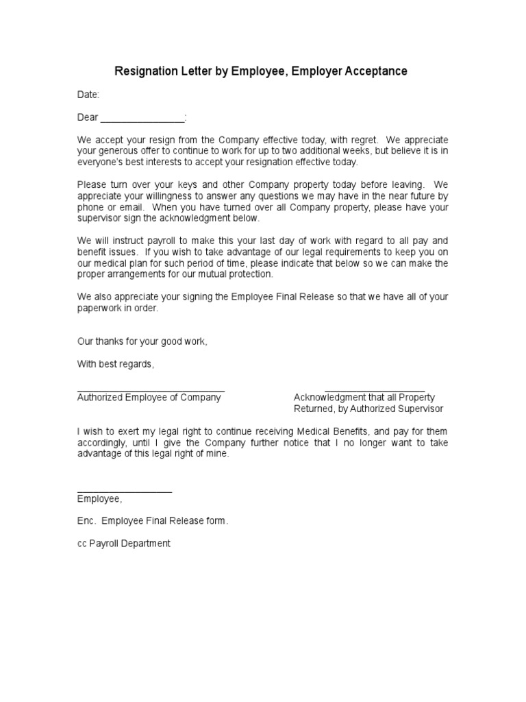 Resignation Letter By Employee Employer Acceptance Pdf Employment Government